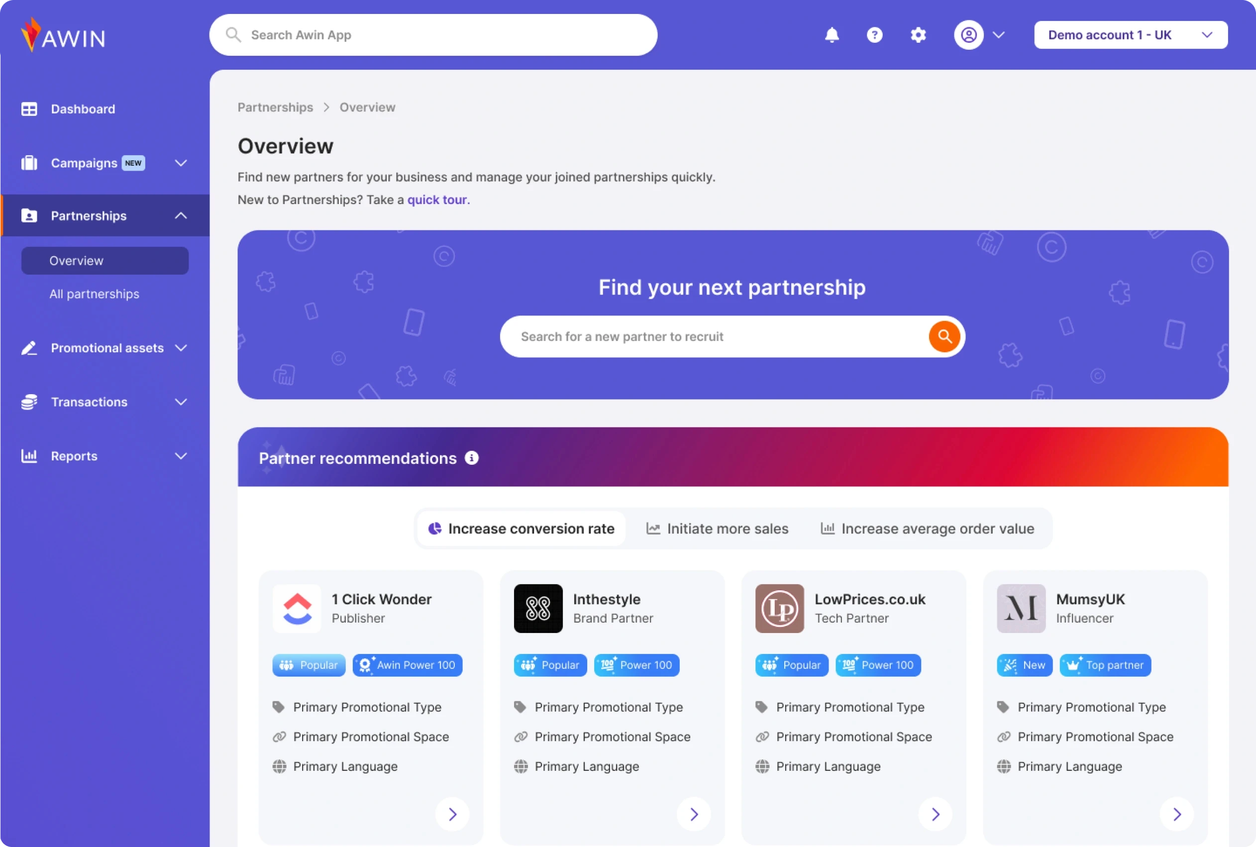 Partnership Discovery, Campaigns Intelligence, Dashboard,