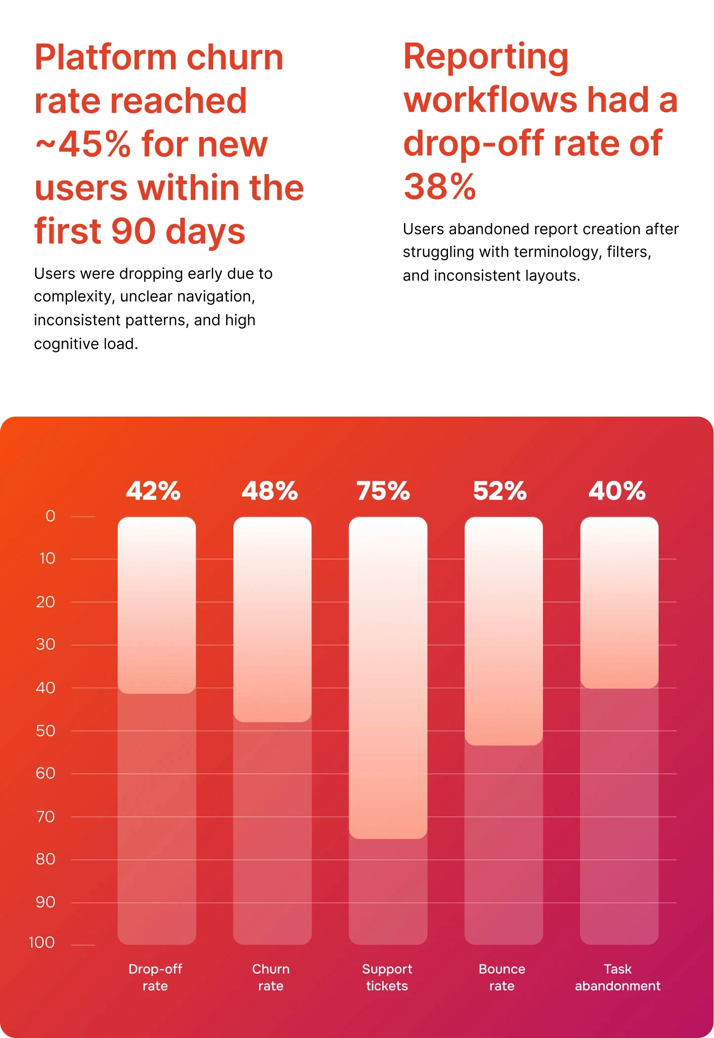 The goal was to unify the entire experience, create a scalable design system foundation, and redesign the platform to improve usability, clarity, and cross-team collaboration.