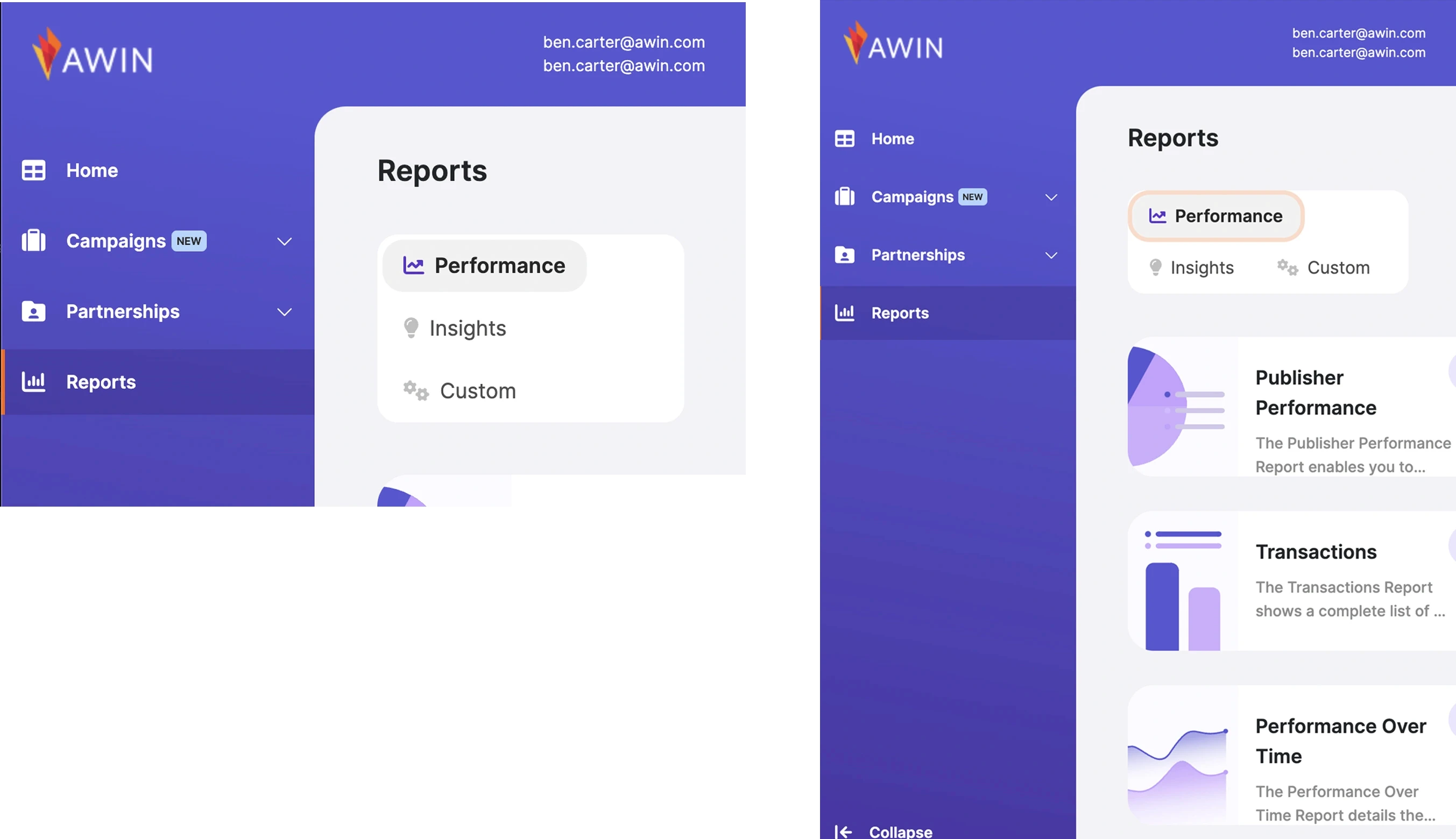 The Awin ecosystem had grown significantly over the years, resulting in a fragmented experience across the entire product: platform, website, navigation, components, flows, and interactions.