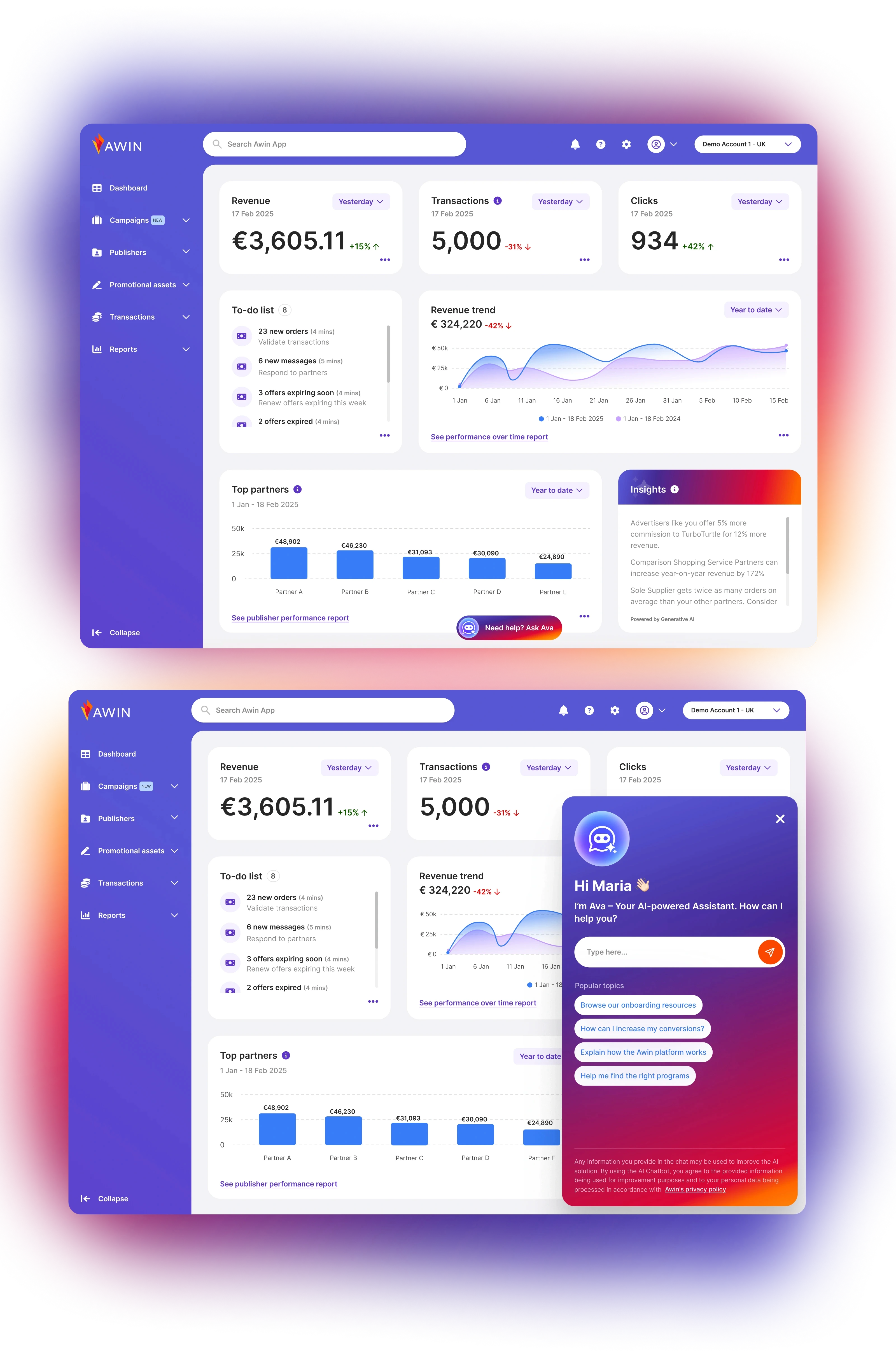 I joined Awin as Lead Product Designer & Design System Lead, owning the full redesign of the platform and website while leading a 12-person design team (UX, UI, Content, Copy, Research).