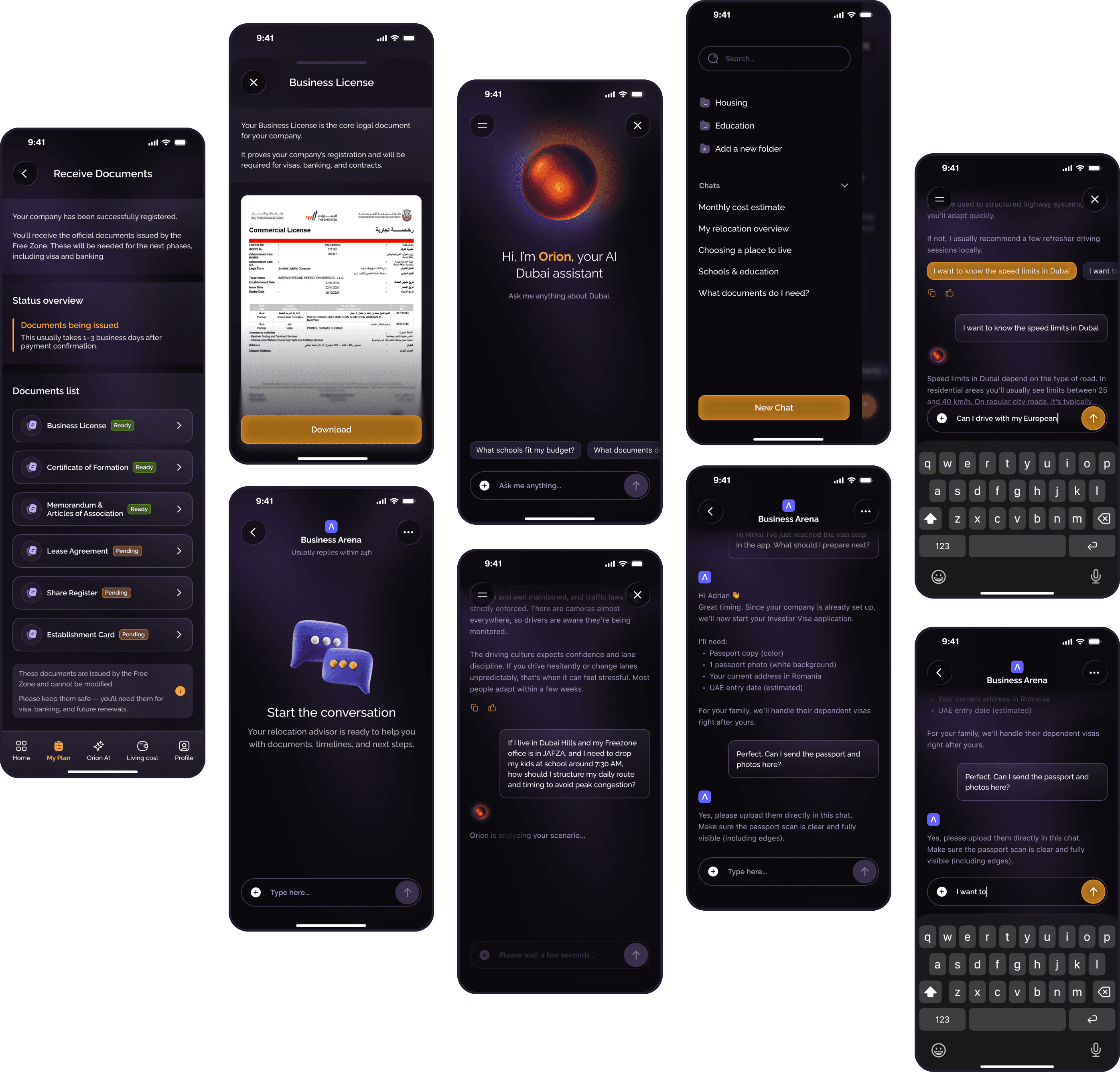 To reduce stress and centralize the entire relocation, I created a secure workspace where users can manage documents, chat directly with their verified relocation partner, and get immediate support from the Orion AI Assistant.