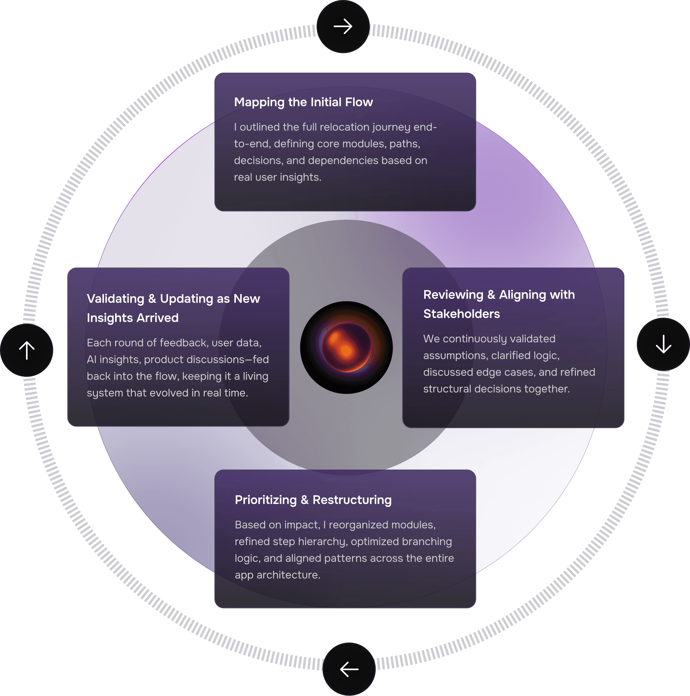 Next, I solved the confusion around the relocation process by breaking everything into clear phases, each with structured steps, full transparency, and AI guidance.