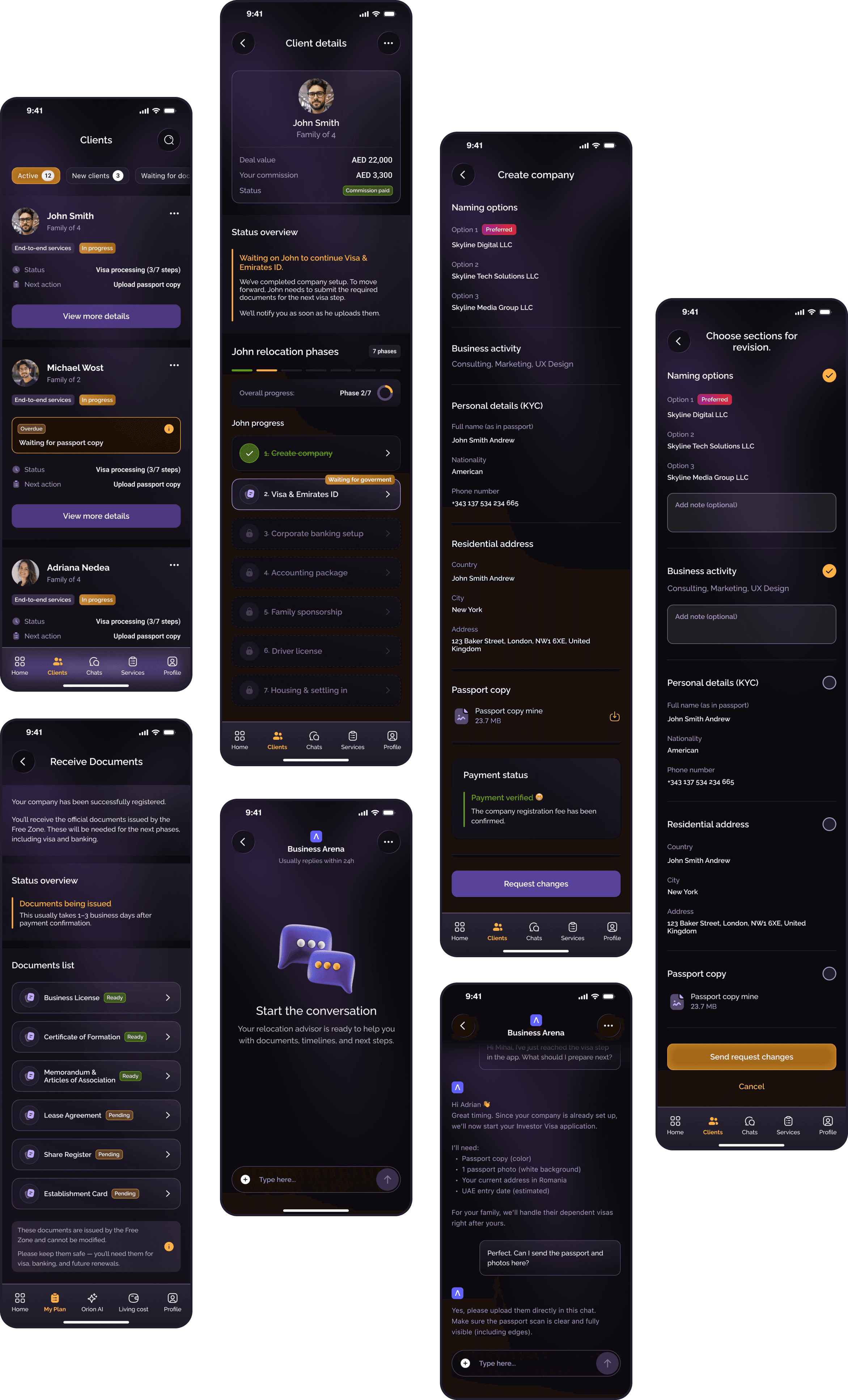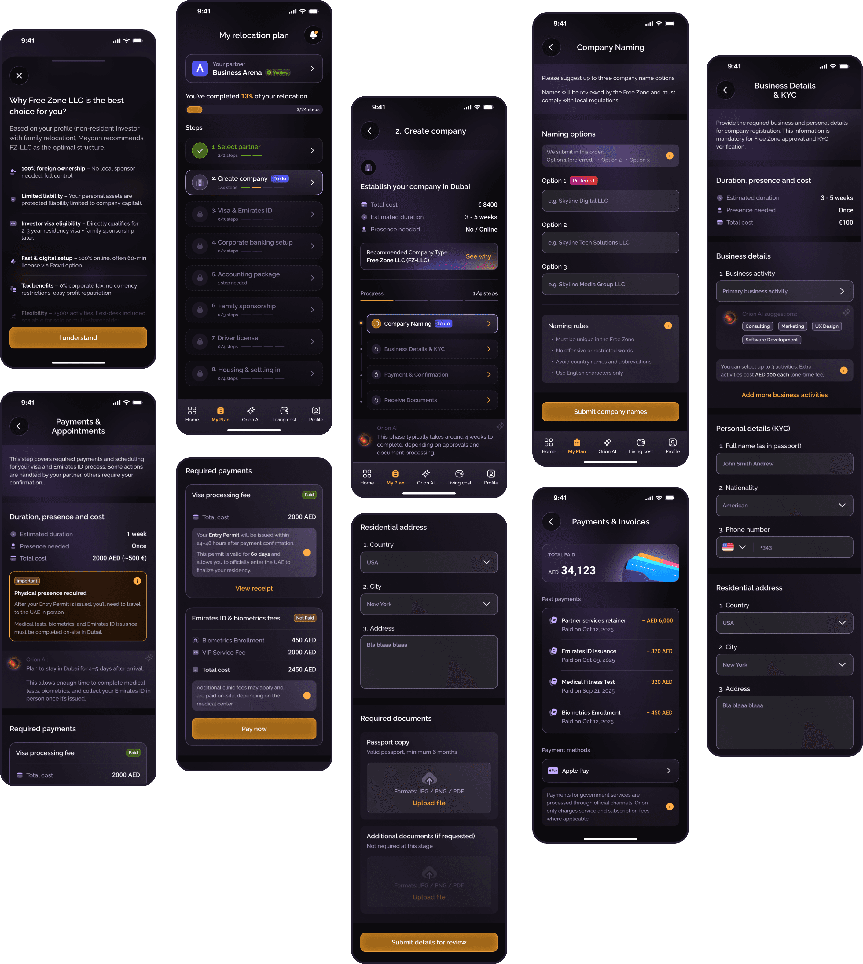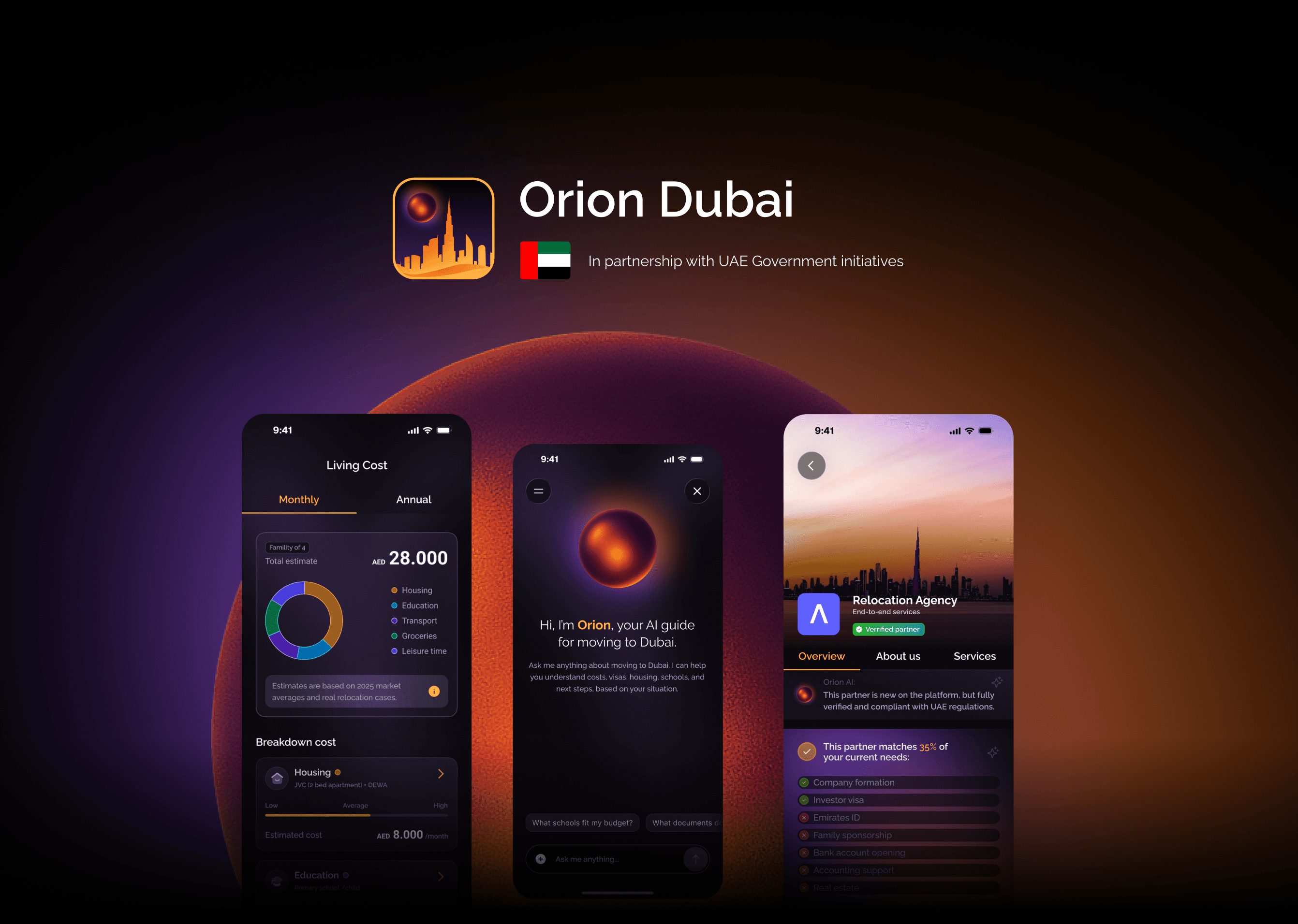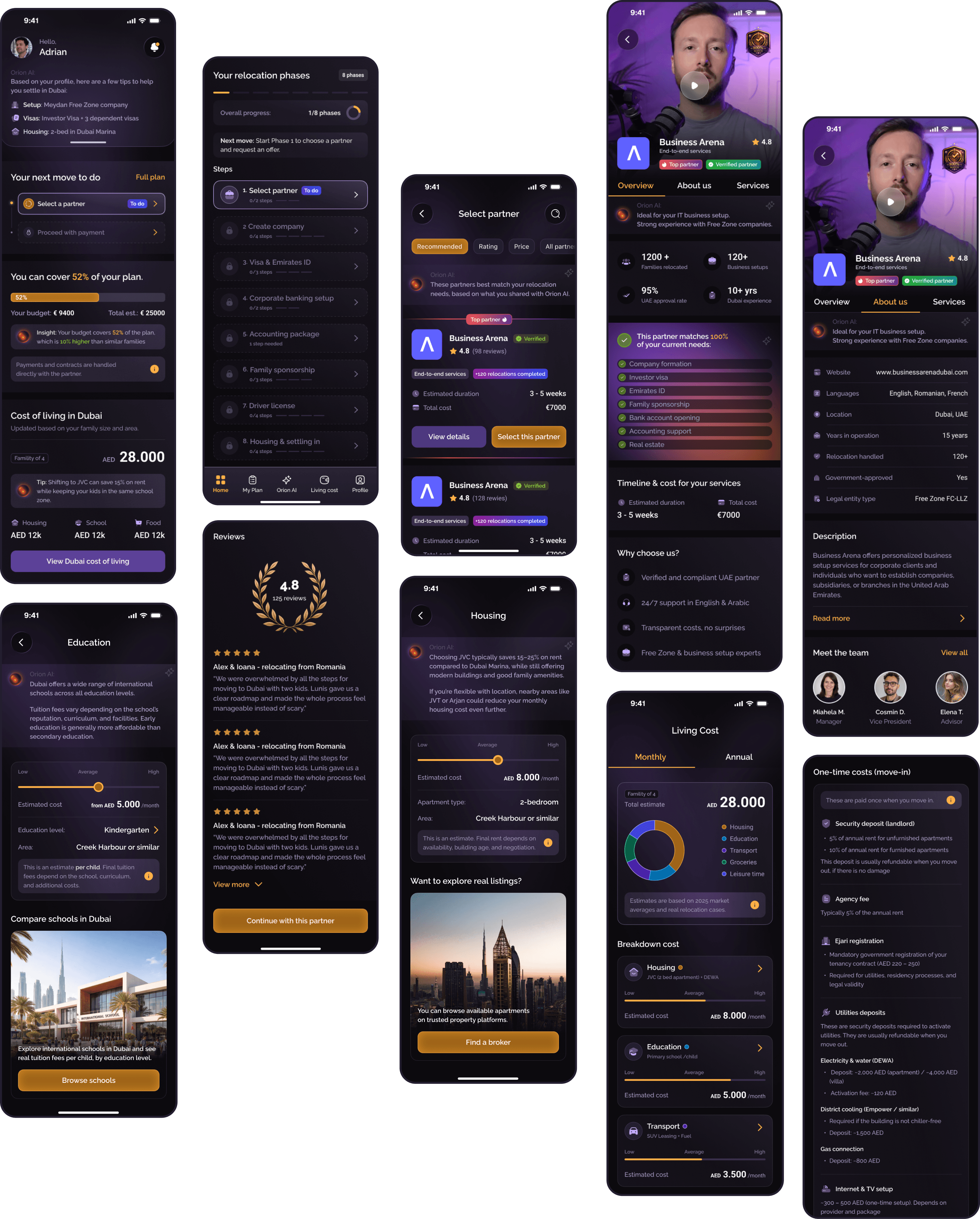 As the Lead Product Designer, I owned the complete design direction of the Orion platform, from early UX exploration to final UI execution. I defined the vision, the architecture, and the end-to-end user experience for both residents relocating to Dubai and partners managing clients.