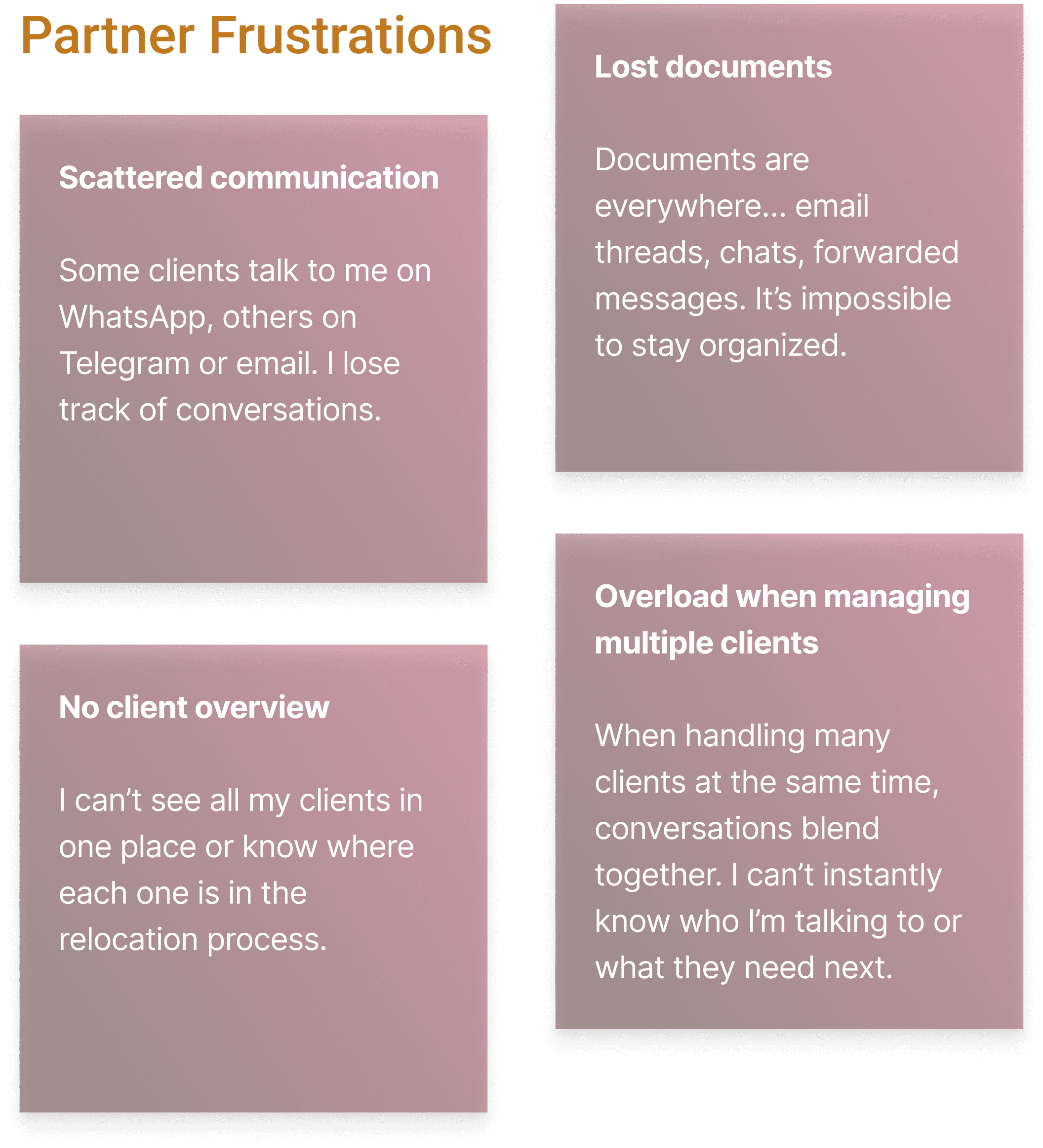A streamlined hub where partners onboard smoothly, manage clients, keep documents organized, and track progress in real time. All without channel chaos. It centralizes everything they need to guide clients efficiently through the relocation process.